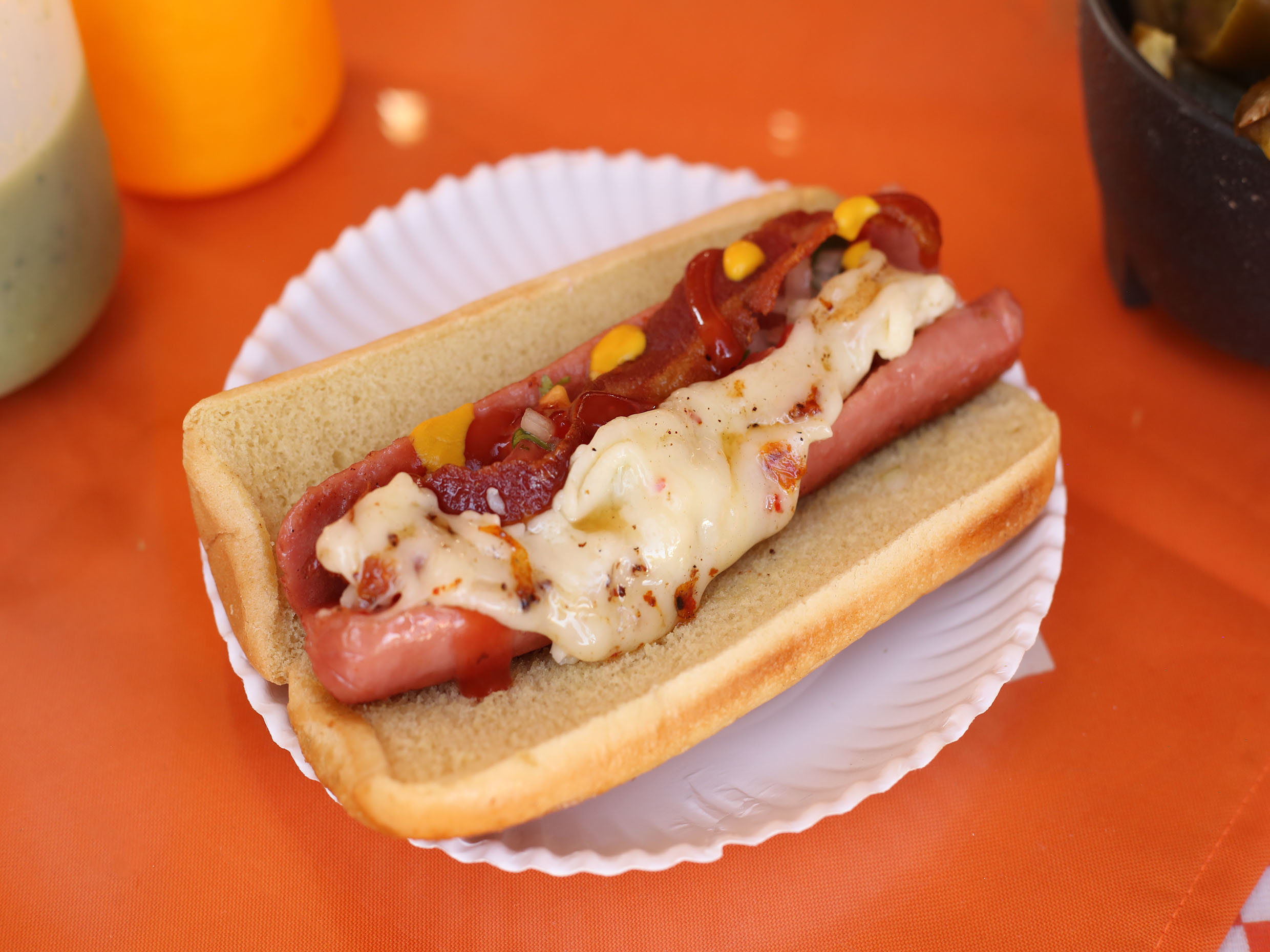 salchicha, queso y tocino