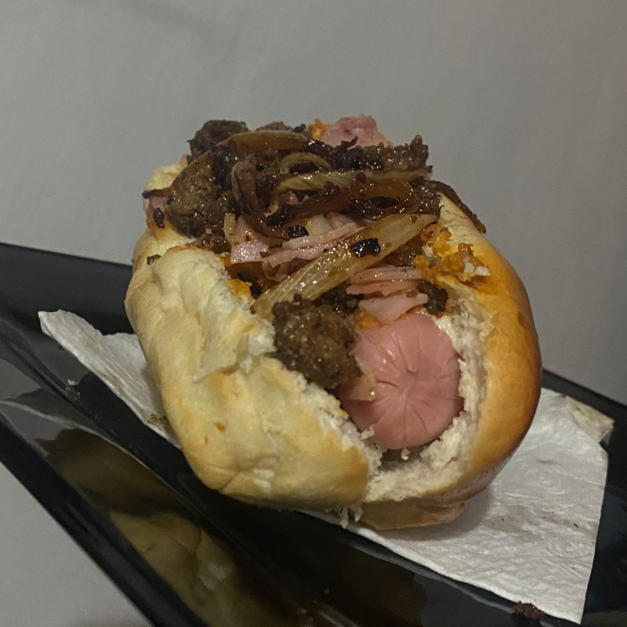 Especialidad de la casa con salchicha, mayonesa, guacamole, carne molida, champiñones y un toque de aderezo chipotle.