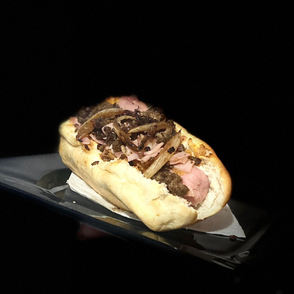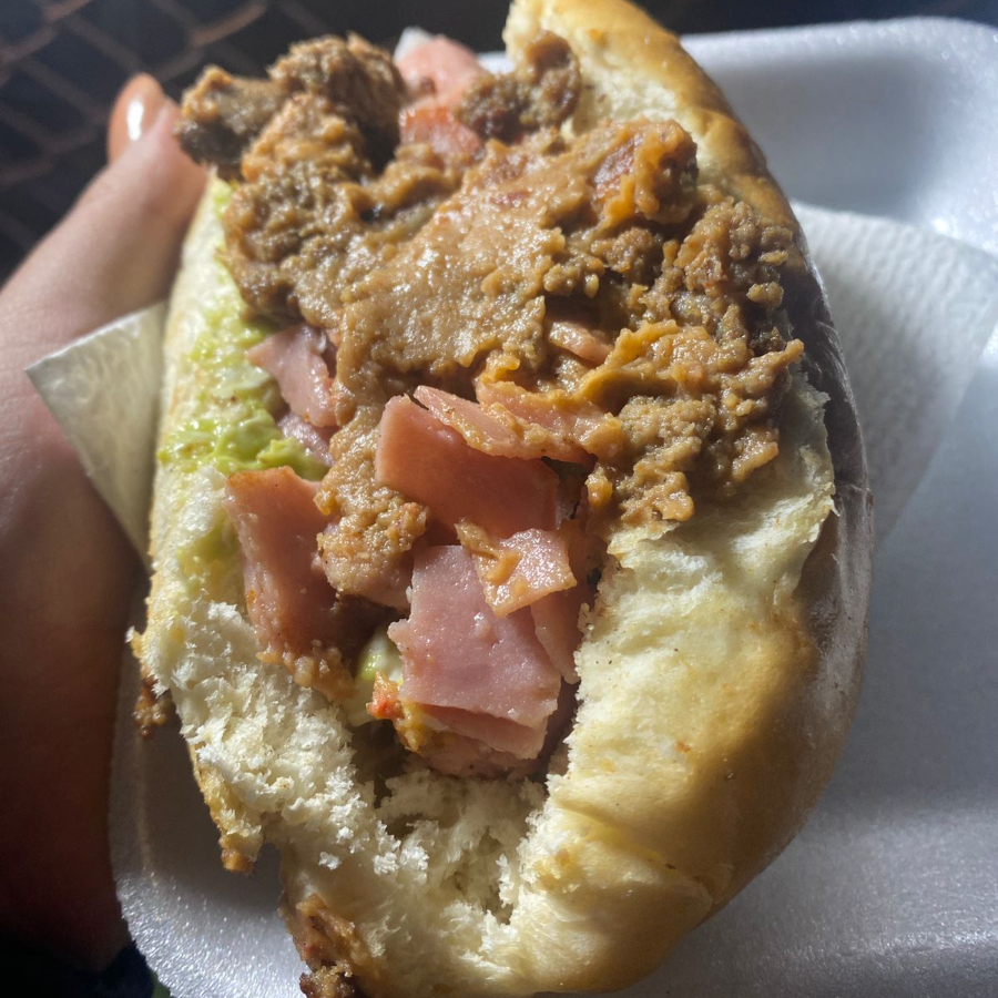 Para los amantes del queso: salchicha, mayonesa, frijoles, jamón con tocino, carne molida y abundante Cheez Whiz.