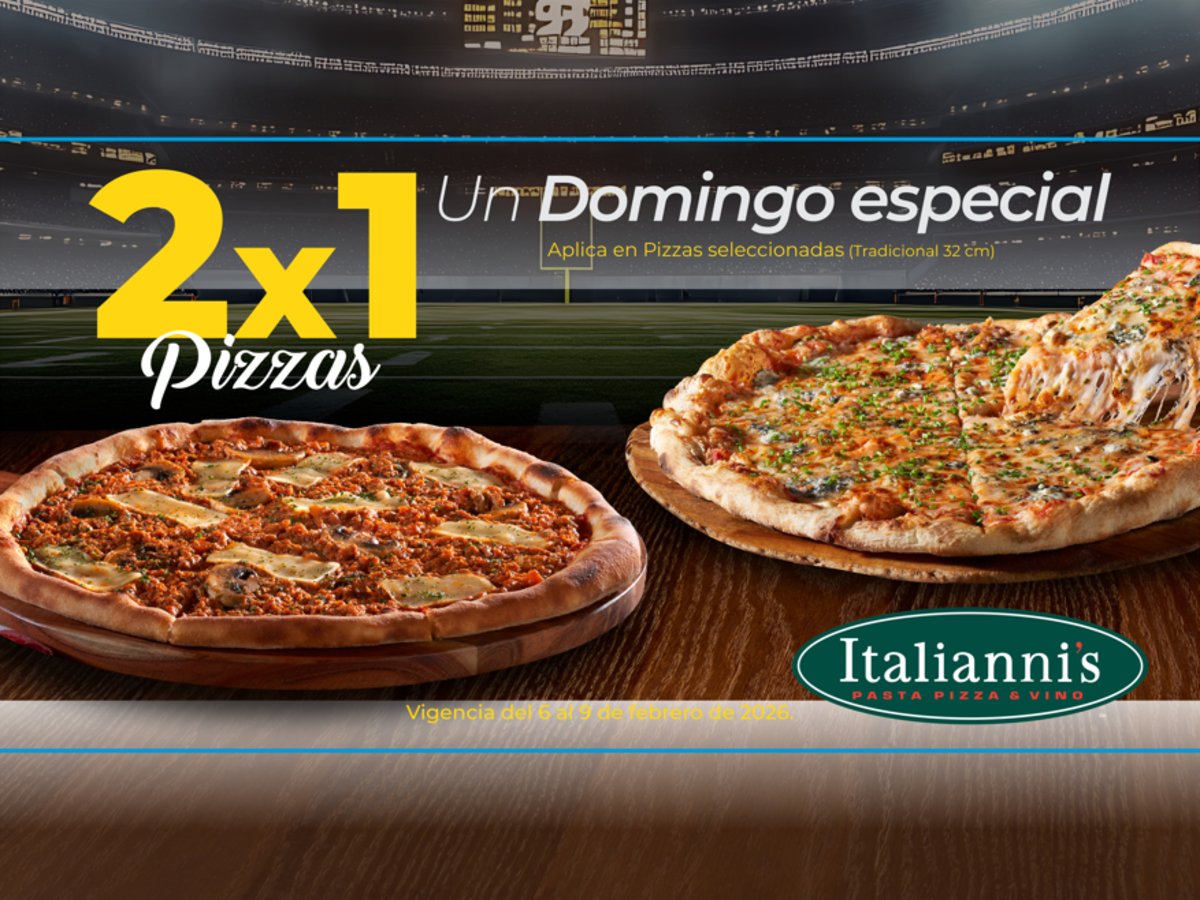 Elige tu Pasta Favorita: Fettuccini Alfredo, Fetuccini Genovese, Spaghetti Alla Bolognese; Elige tu Pizza Favorita: (Indivdual) : Pizza Peperoni, Pizza Jamón e Aceituna, Pizza Margherita Clasica, Pizza 4 Quesos.