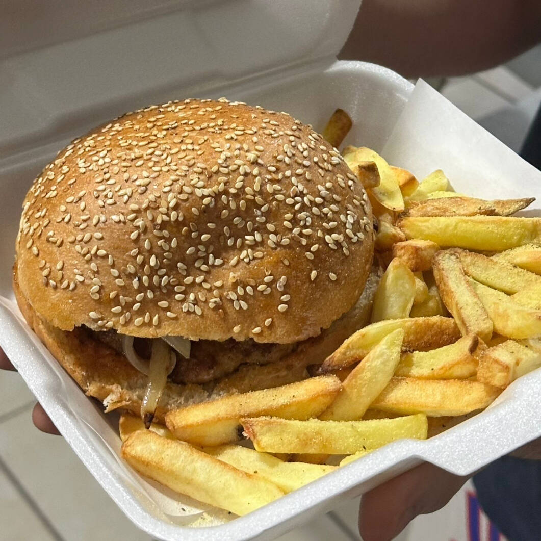 Deliciosa carne con el sazón de la casa, tocino, queso manchego, cebolla caramelizada y jitomate, servida en pan artesanal con ajonjolí