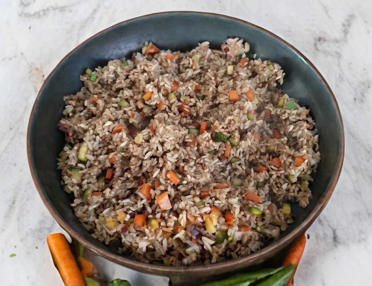 Arroz frito con verduras.