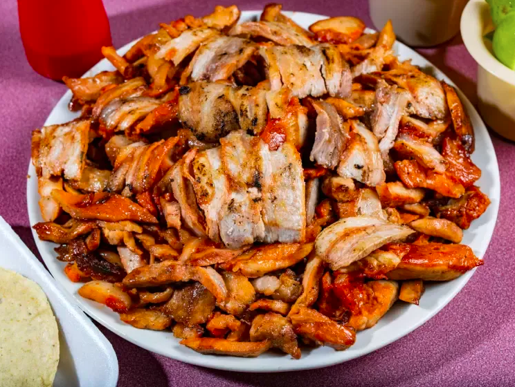 Salsa de birria, pastor, queso, cilantro y cebolla.