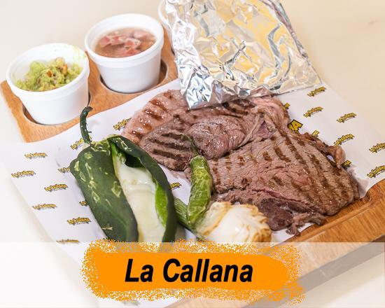 Delicioso queso asadero fundido, acompañado con jugosa carne de arrachera, con sus guarniciones, de ensalada de nopales, frijoles charros, guacamole, cebolla asada y chiles toreados, así como son de tortilla de maíz y harina.