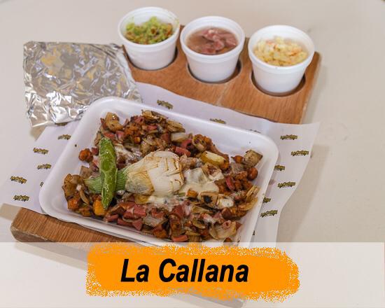 Delicioso puré de papa natural preparada con queso asadero y crema, acompañada de queso amarillo, queso asadero, jugosa carne de arrachera, acompañada de tortilla de harina y maíz, así como de sus guarniciones de ensalada de nopales, frijoles charros y guacamole, cebolla asada y chiles toreados.