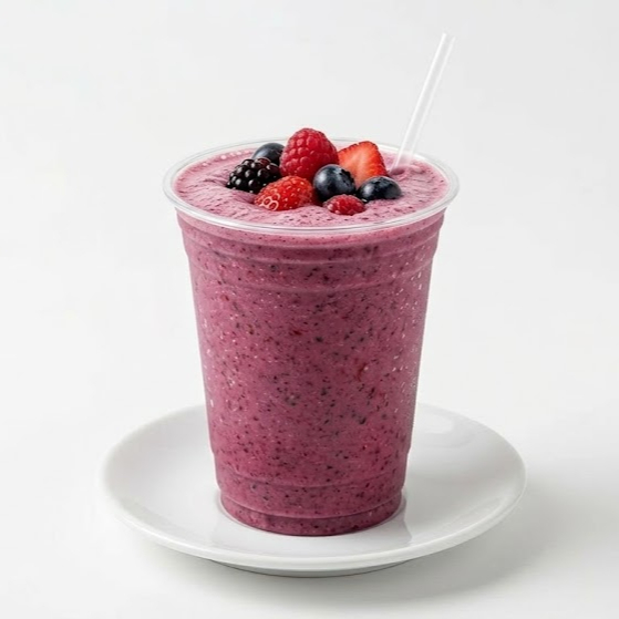 dos huevos estrellados acompañados de tocino sobre dos deliciosos waffles, con maple, frutos rojos como complemento