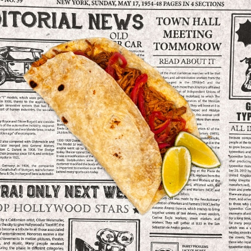 Deliciosa tortilla de harina hecha al momento, paseado estilo Monterrey relleno de cochinita pibil.