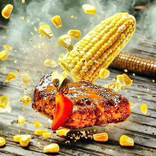 Nuestro postre estrella, una deliciosa rebanada de pan de elote, bañado en dulce de leche y almendra tostada.