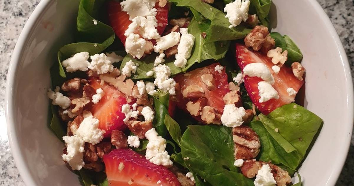 Espinaca, queso de cabra, almendras, pera, vinagreta de fresa.