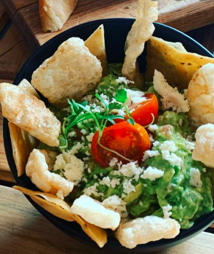 Guacamole con chicharrones.