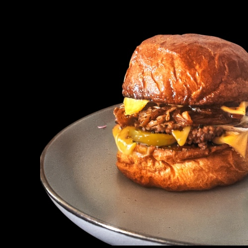 Delicioso slider de cerdo cocinado en salsa BBQ, cebollas caramelizadas, queso americano y nuestro aderezo de la casa.