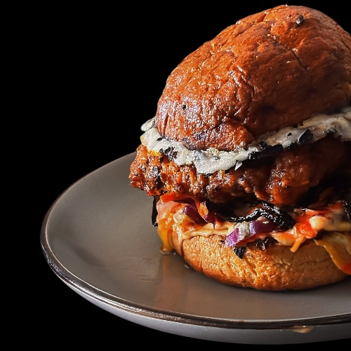 Imperdible pollo empanizado y cubierto en miel de chiles, ensalada de col americana, aderezo tártaro y queso fundido.