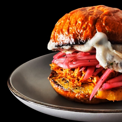 Decadente y lleno de sabor, está elaborado con pan cubano, nuestra cochinita pibil , piña asada al grill y cebollas encurtidas. sabe como se ve.
