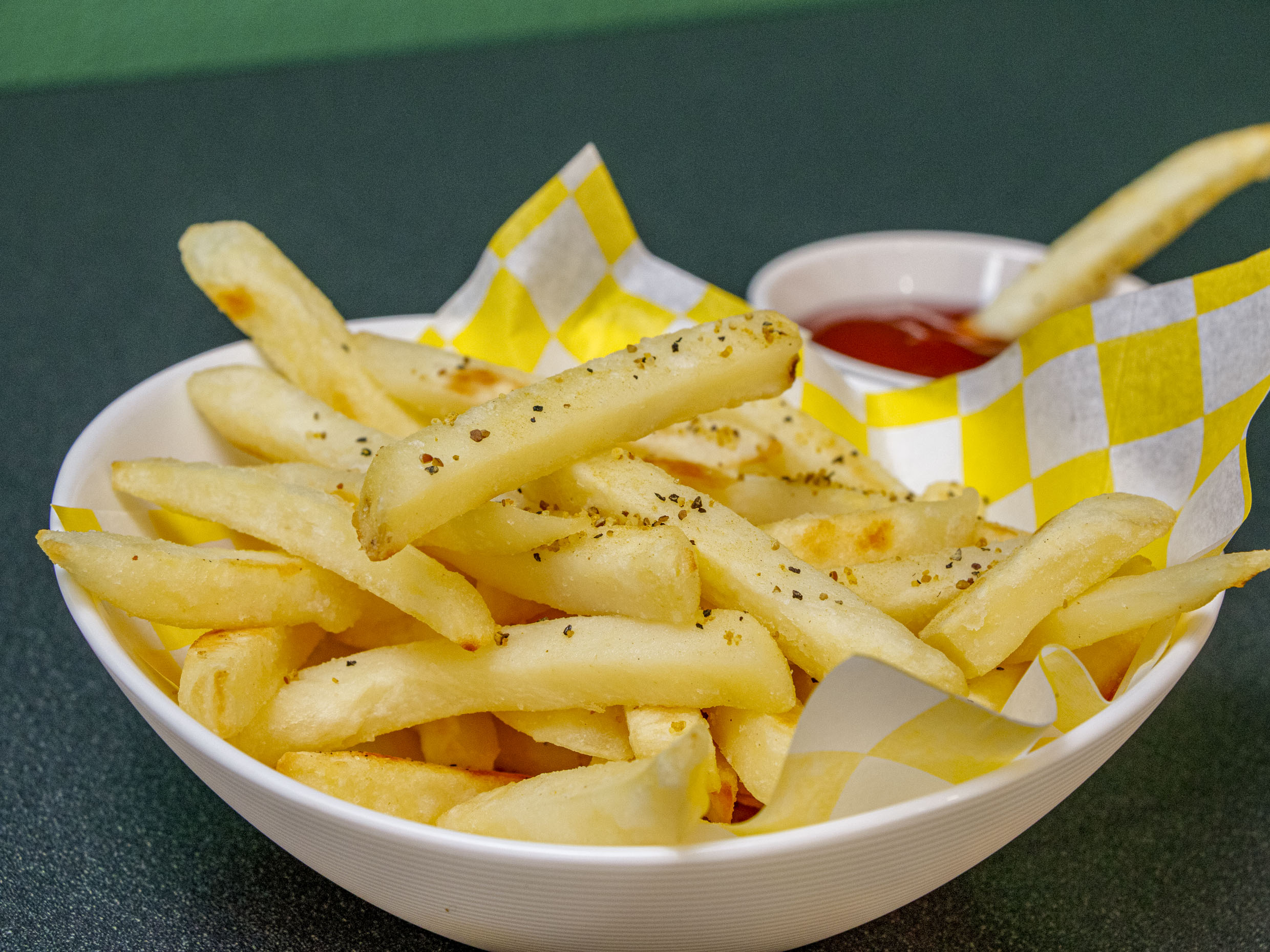 Papas a la francesa horneadas 200 gm, acompañadas con catsup.
