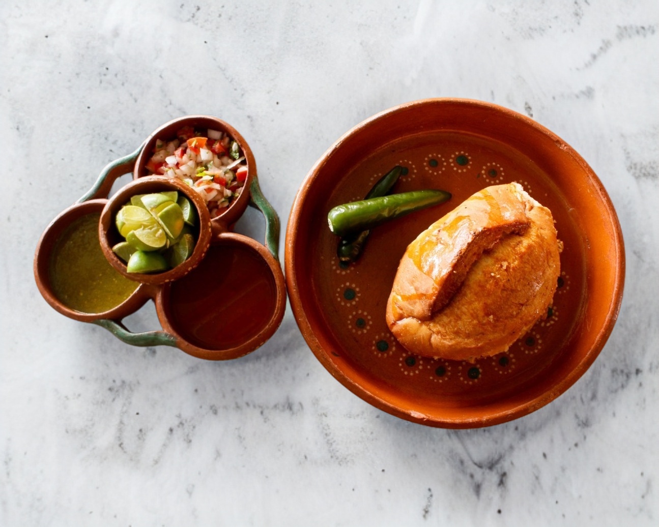 1/4 kg de carnitas, pico de gallo, salsas, limones y 5 tostadas.