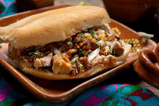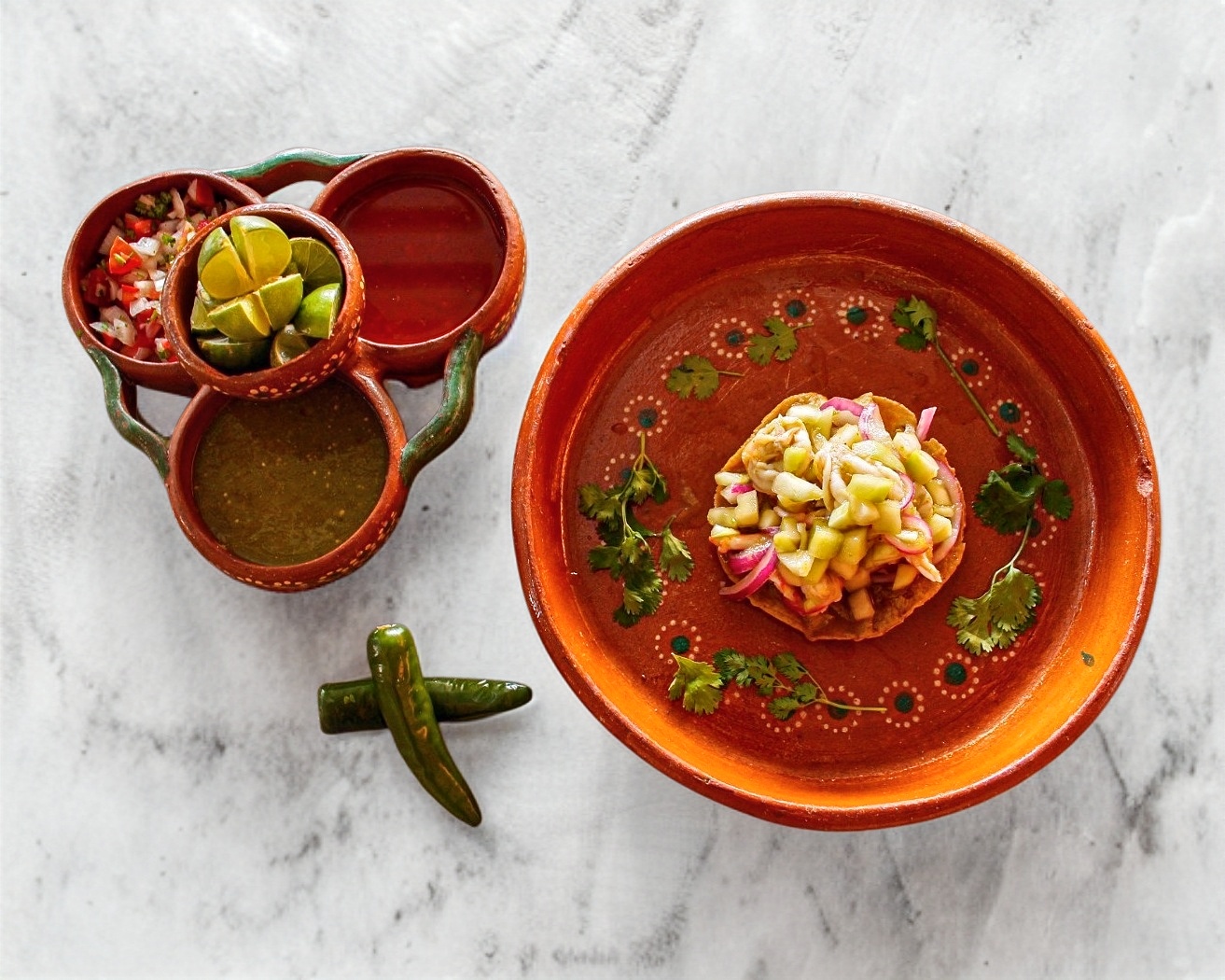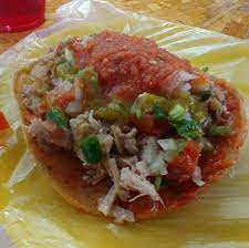 Tosticarne tostada y carne de puerco pico de gallo salsas