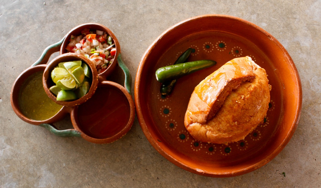 1/4 kg de buche, pico de gallo, salsas, limones y 5 tostadas.
