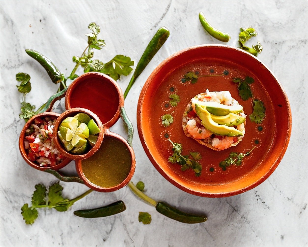 1/4 kg de combinado, pico de gallo, salsas, limones y 5 tostadas.