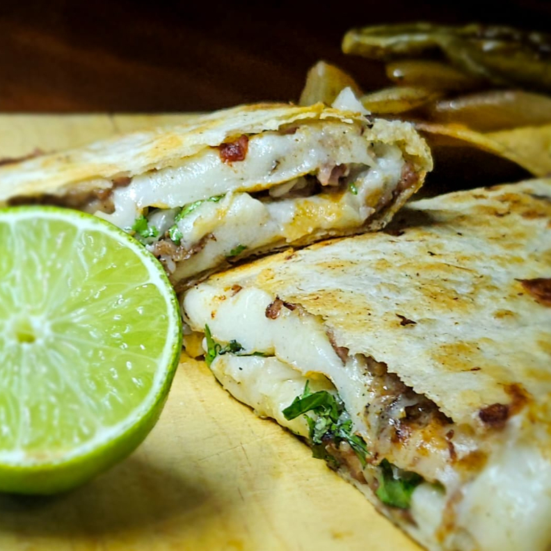 Sabroso Cachete de Res con su queso y tortilla grande de harina
