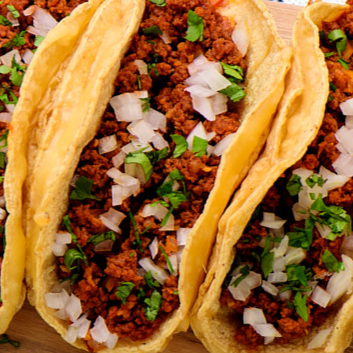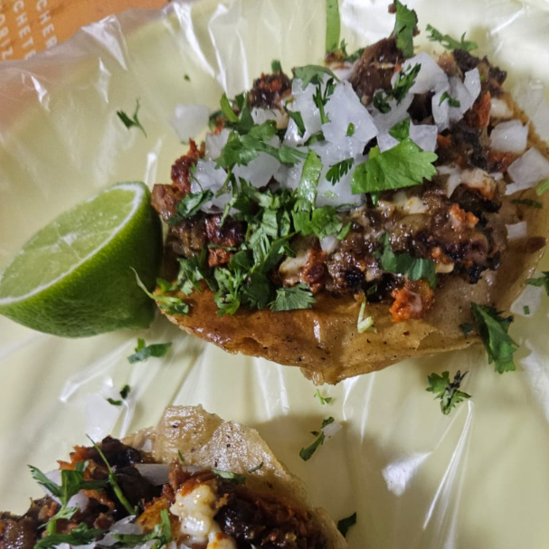 Tacos de tripa Dorada con respectivo cilantro y cebolla