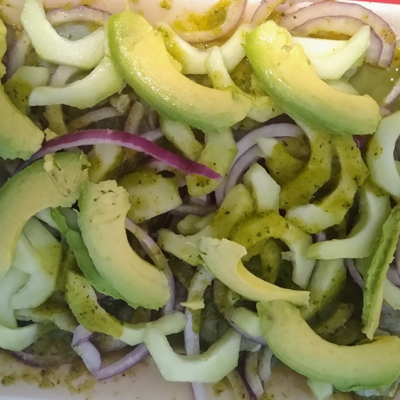 Ceviche de pescado, acompañado de aguacate, cebolla, jitomate y cilantro. (Personal)