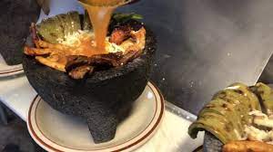 Pollo carne adobada, carnitas, nopal, chile capón, cebolla cambray, quesadilla chorizo y queso asadero