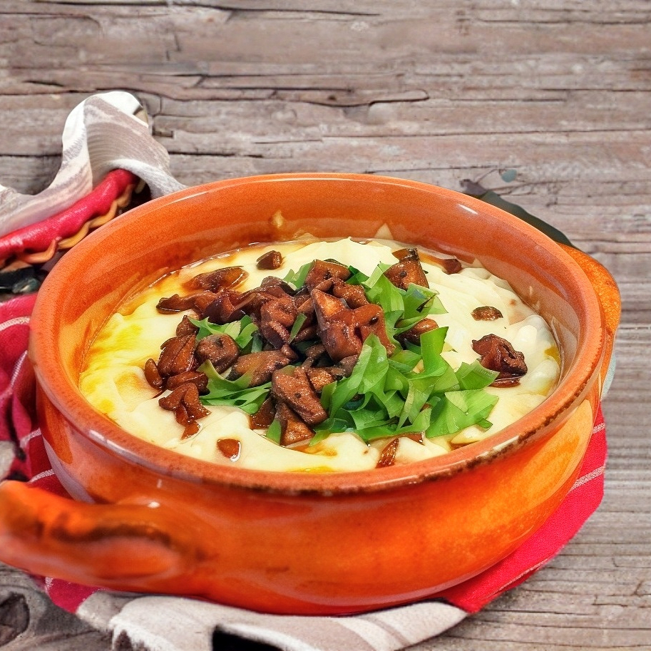 Exquisto queso asadero fundido acompañado de tortillas de harina y maíz. Y uningrediente de su elección champiñón, raja o chistorra