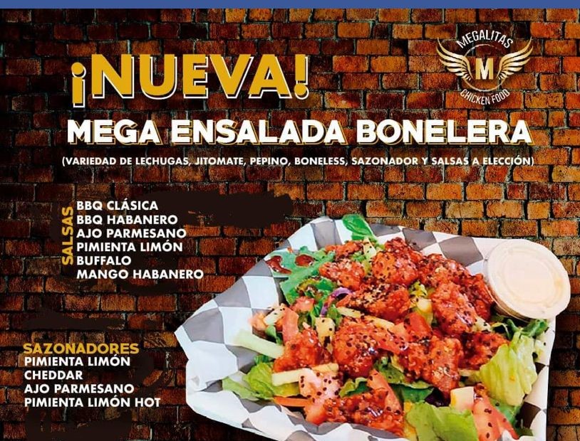 deliciosa ensalada de lecchuga, jitomate, pepino, boneless, sazonadores y salsas a elegir