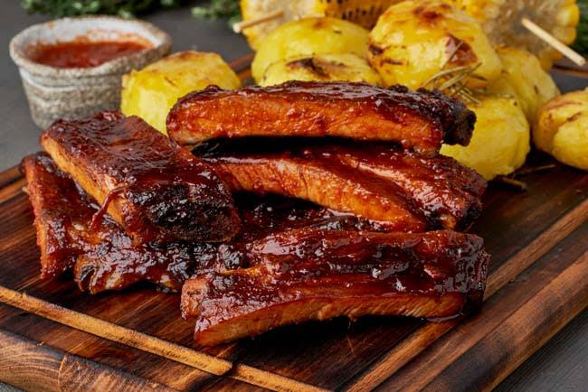 Deliciosas 300 gr de costillas con papas gajo salsa a elegir
