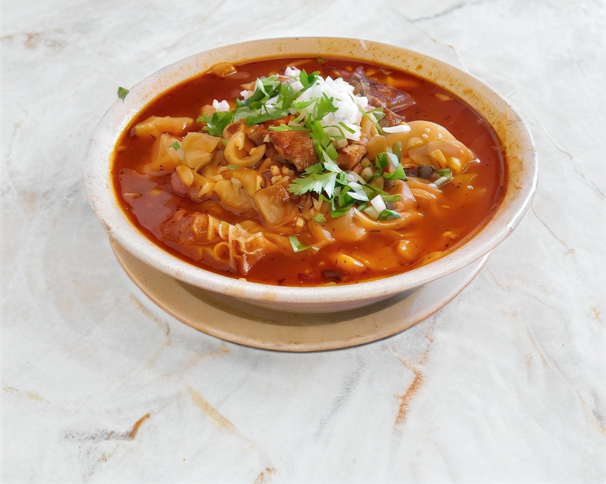 1 Litro de menudo incluye 3 tortillas grandes hechas a mano, cebolla y chile picado, oregano y limón.