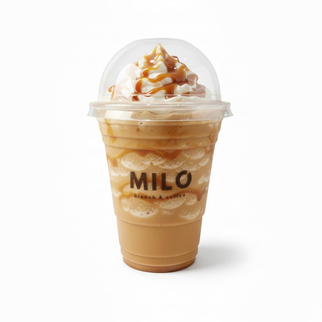 El intenso toque de cafe se mezcla con suave leche fria y un generoso sabor a caramelo que envuelve tu paladar, creando una experiencia irresistible, fresca y absolutamente deliciosa