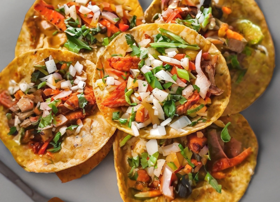 4 TACOS EN TORTILLA DE MAIZ CON YESCA DE LA CASA ESTILO ZACATECAS, ACOMPAÑADOS DE CHILE TOREADO, CEBOLLA ASADA Y PICO DE GALLO