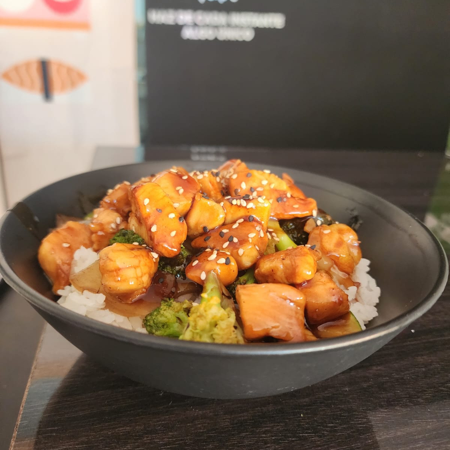 Base de una cama de arroz de 320 g acompañado de 280 g de cubos de pollo y brócoli bañados en nuestra deliciosa salsa de soya receta de la casa, incluye un shake de 2 tipos de ajonjolí. ¡Riquísimo de principio a fin!