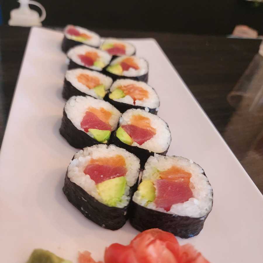 Alga por fuera, salmón y atún frescos, aguacate por dentro.