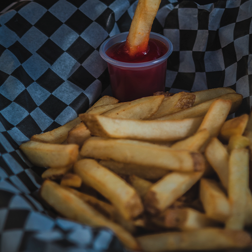 Papas a la francesa bañadas en dos quesos acompañadas de boneless.