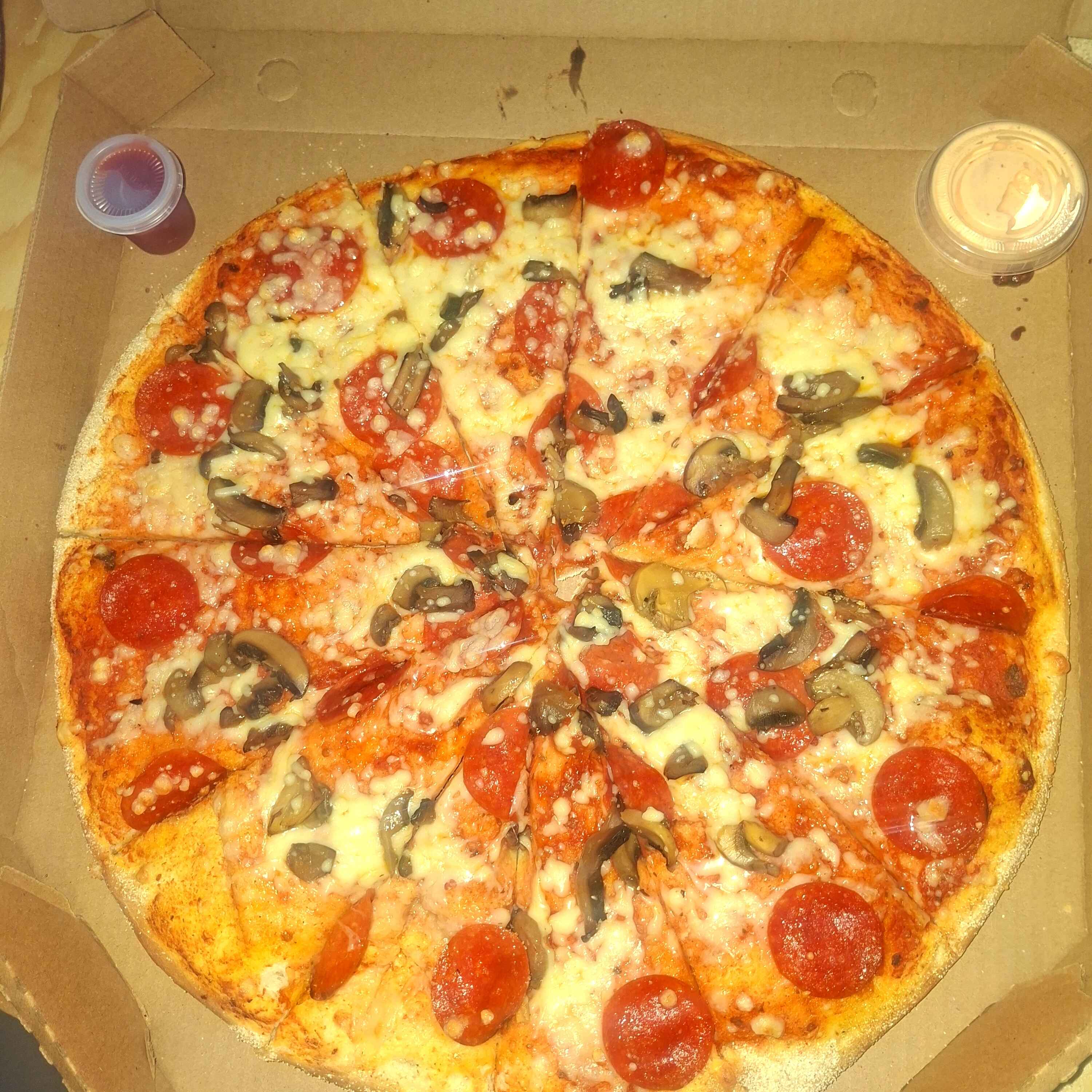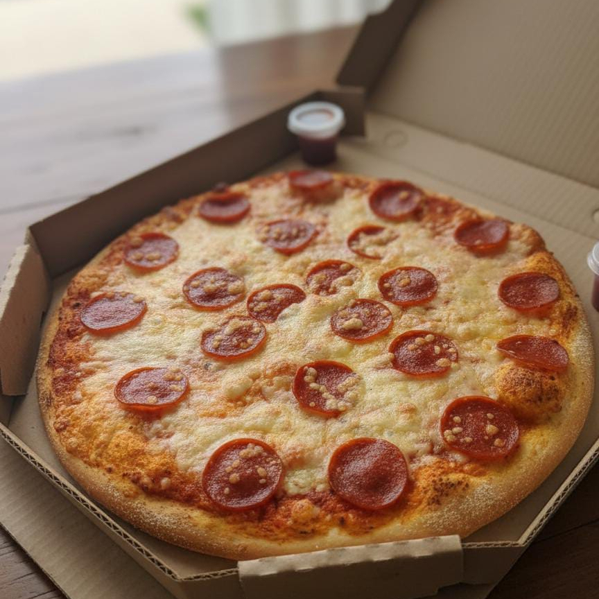 Deliciosa pizza de pepperoni más queso manchego acompañado de mozzarella