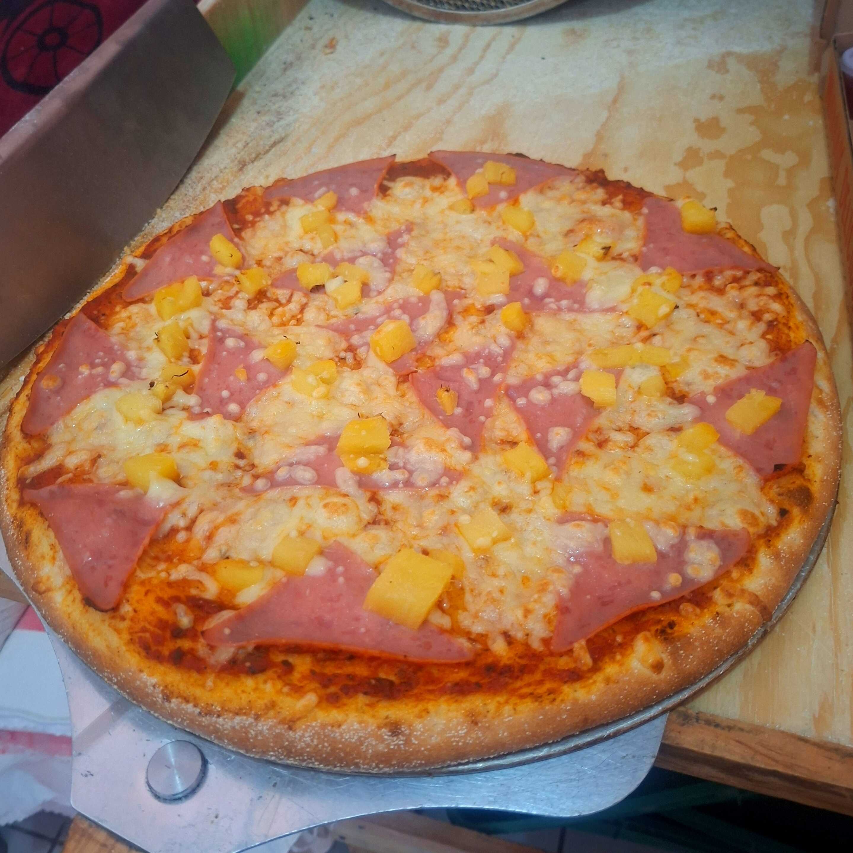 Deliciosa pizza acompañada de piña más delicioso jamón acompañado de queso mozzarella