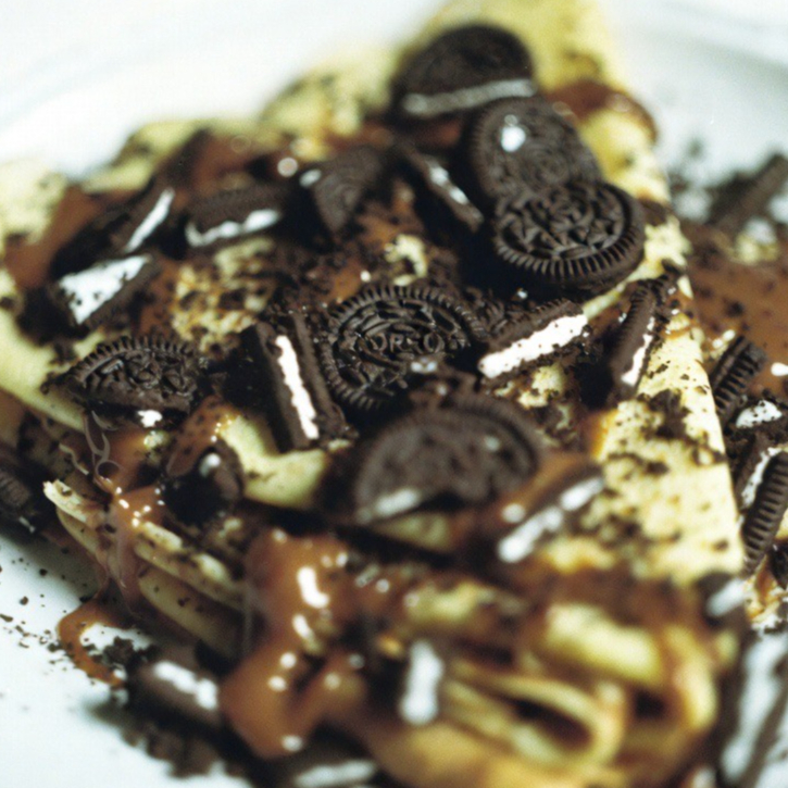 Cinco piezas de galleta Oreo cubiertas con suave masa de hotcake, doraditas y recién hechas. Incluyen 1 topping y 1 untable a elección para disfrutarlas a tu gusto