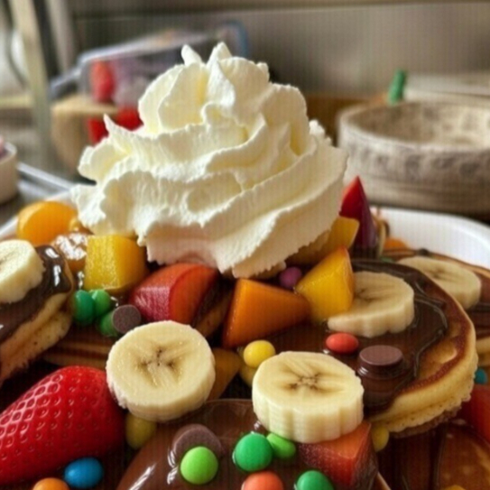 Nuestra crepa más completa: 3 toppings, 3 untables y crema batida, perfecta para darse un gustazo