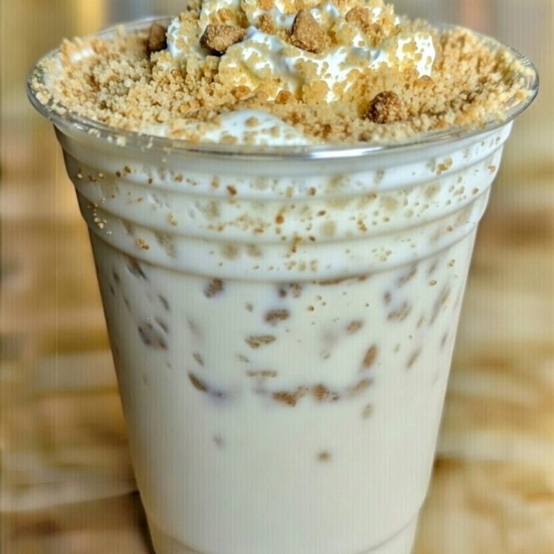 Frappé dulce y cremoso con auténtico sabor a mazapán, perfecto para consentirte con un toque tradicional y delicioso. (Nota: puede llegar ligeramente derretido, ¡pero sigue delicioso!)