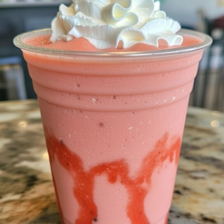 Frappé cremoso y dulce con auténtico sabor a fresa, perfecto para cualquier momento del día. (Nota: puede llegar ligeramente derretido, ¡pero sigue delicioso!)