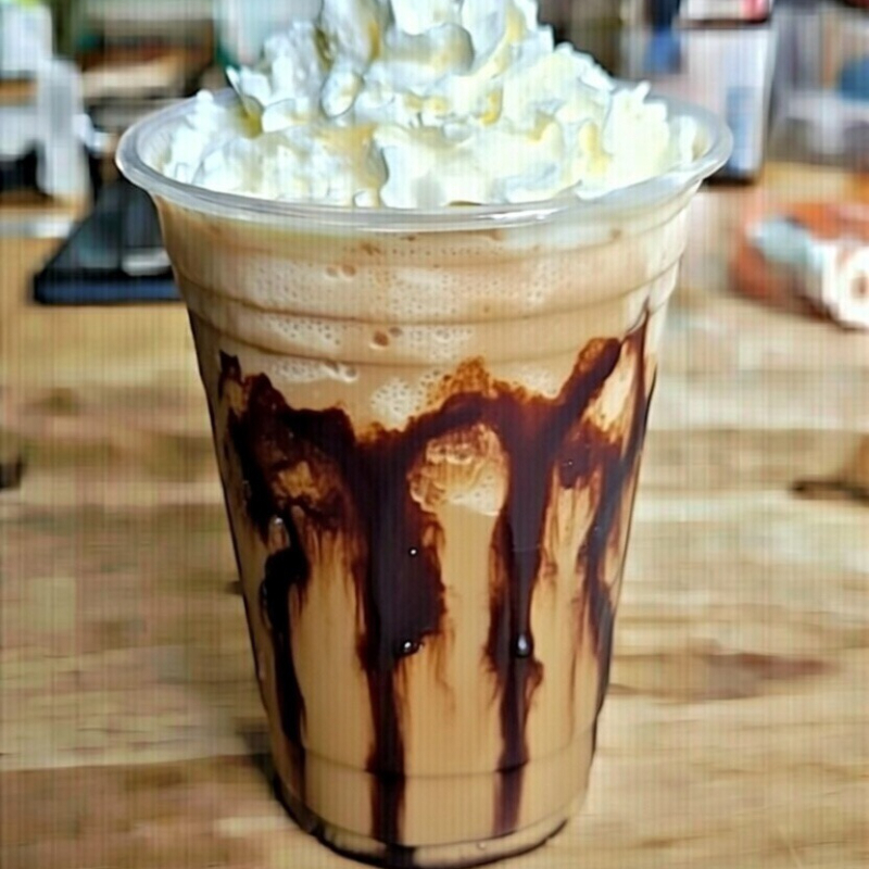 Frappe con café y chocolate, cremoso y dulce, ideal para quienes aman el sabor intenso del cacao y el café juntos. (Nota: puede llegar ligeramente derretido, ¡pero sigue delicioso!)