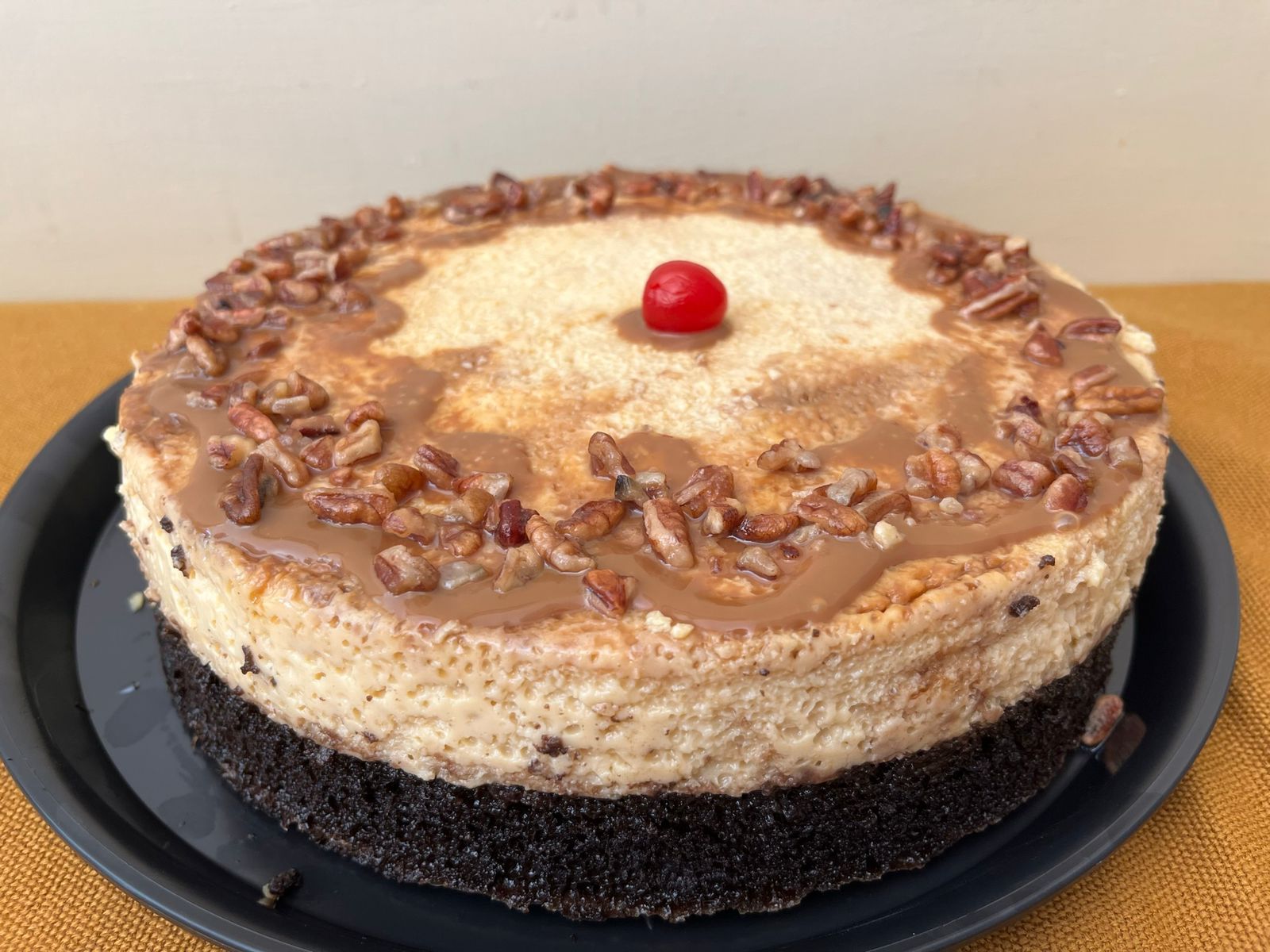 Pan chocolate con cobertura coco, nuez y cajeta, 22 rebanadas.