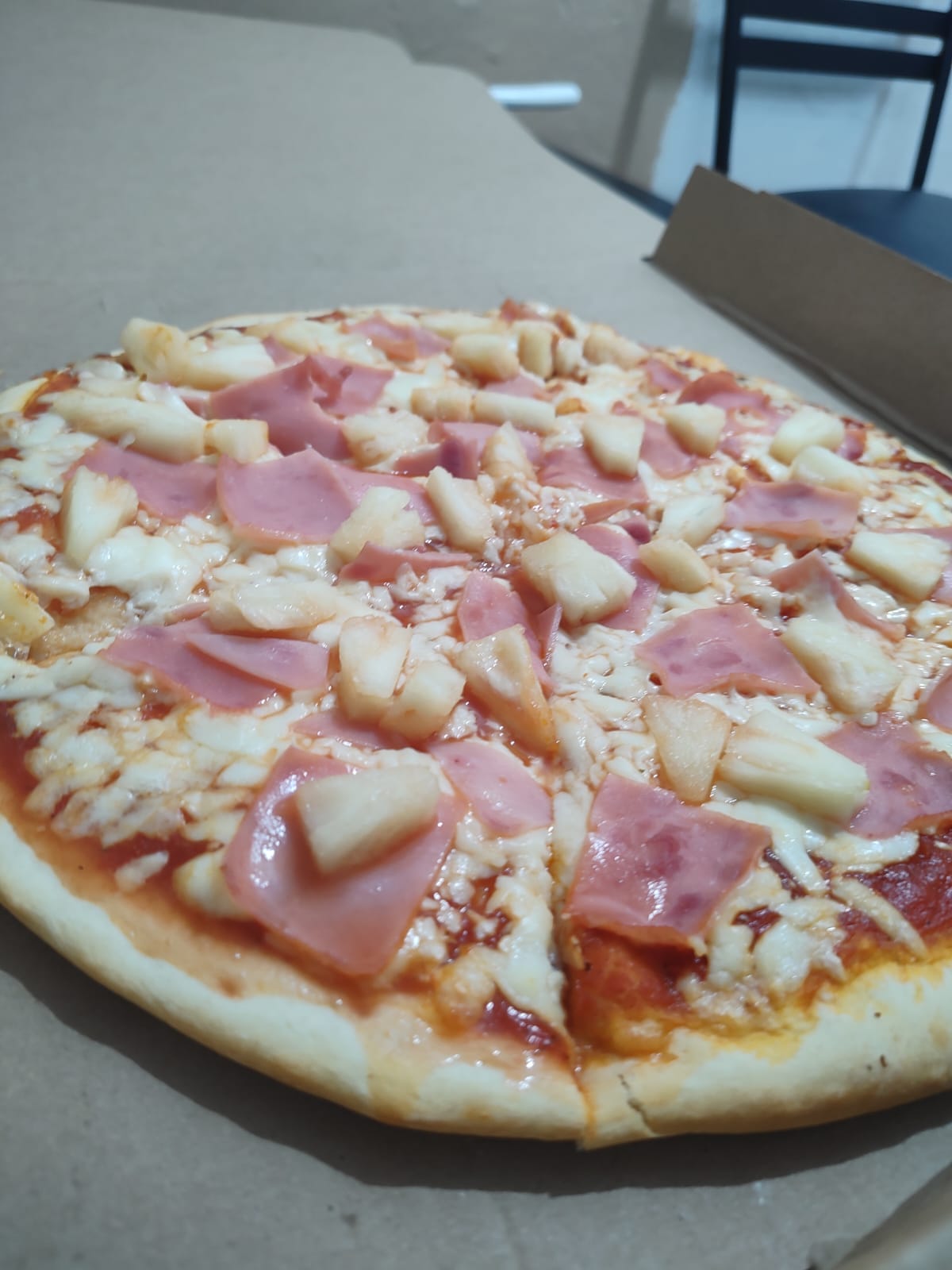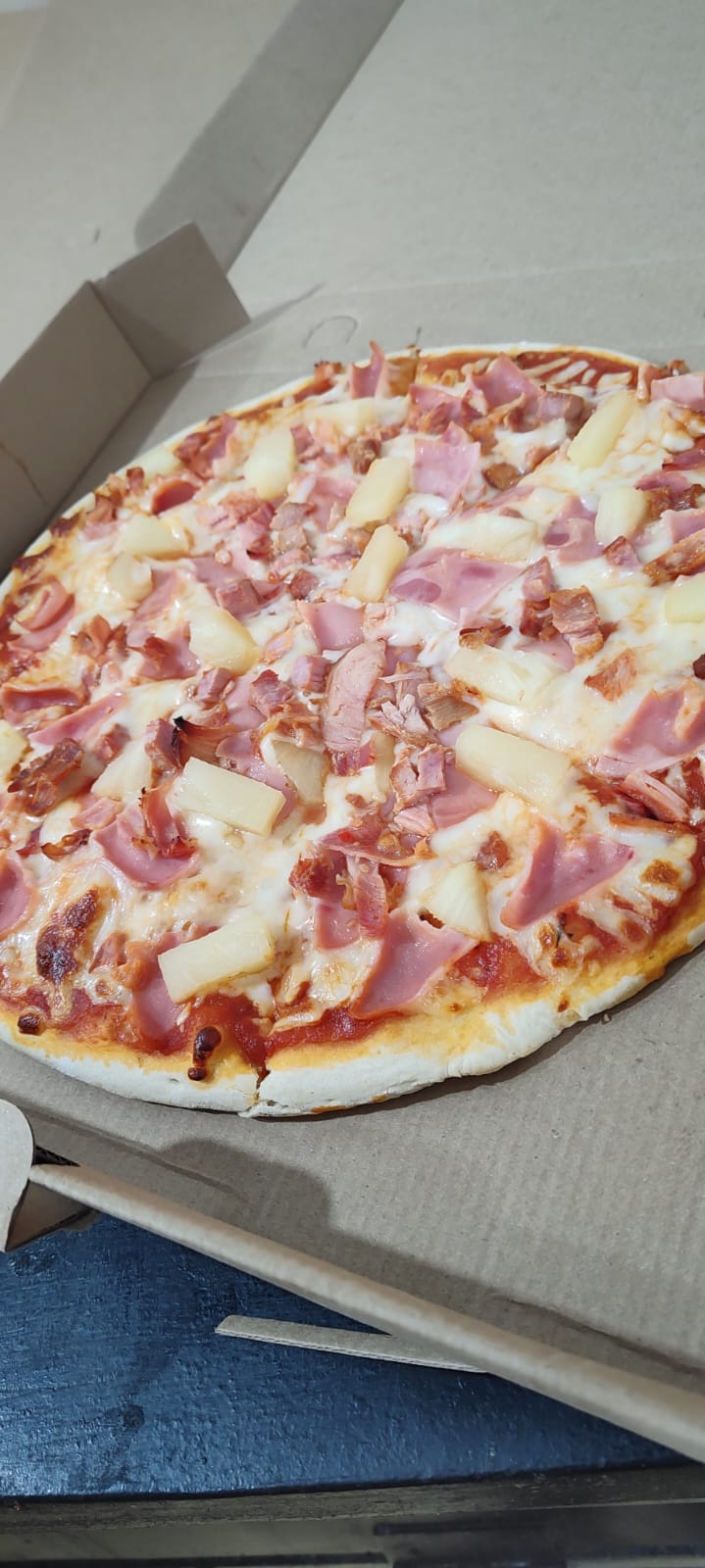 Champiñones, piña, aceituna, pimiento y extra queso.