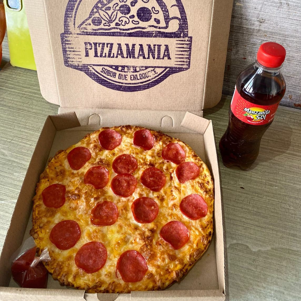 nuestro combomania incluye una pizza a elegir mas una orden de papas 250gr mas 2 refrescos pet 400ml (sabores sujetos a disponibilidad))