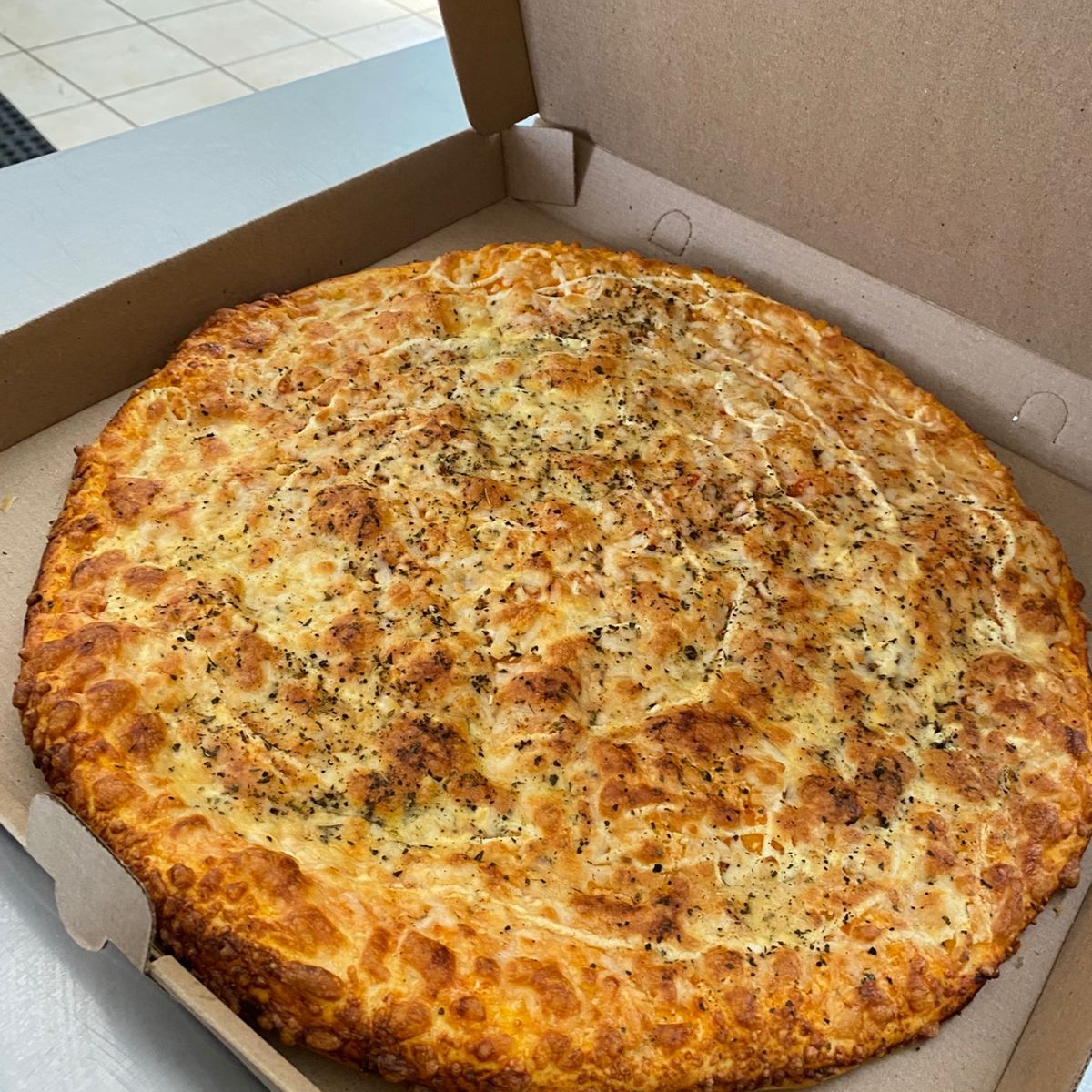 Nuestra Pizza cuatro quesos no se queda atrás creando una perfecta combinación de sabor entre queso manchego, gouda, mozzarella y queso crema acompañados de esencia de albahaca 1 Pizza de 35 cm y 8 rebanadas acompañado de salsa chimichurri y salsas catsup