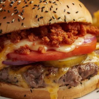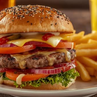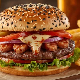 Hamburguesa Arrachera/Tocino/BBQ/Extra Queso/Papas