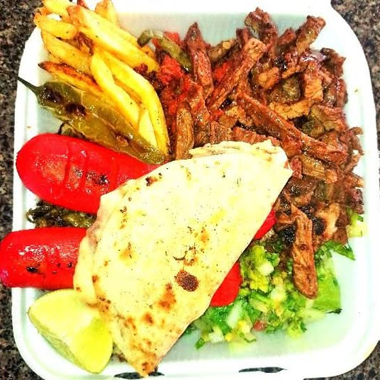 Jugosa Carne Asada, Cebollita, Extra Queso, Guacamole Chico, Tortillas, Limones, Toreado, Salsas.