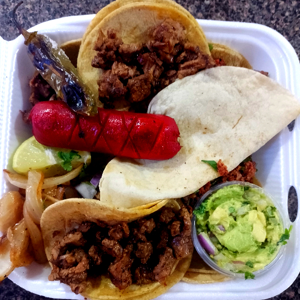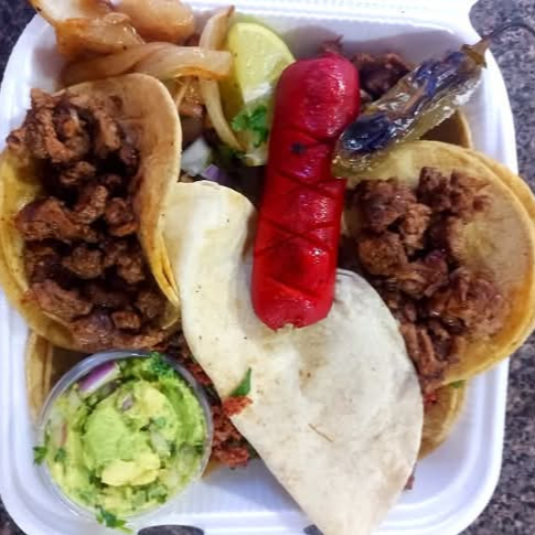 6 Tacos Asada/Salchichón/Quesadilla,Guacamole, Beb