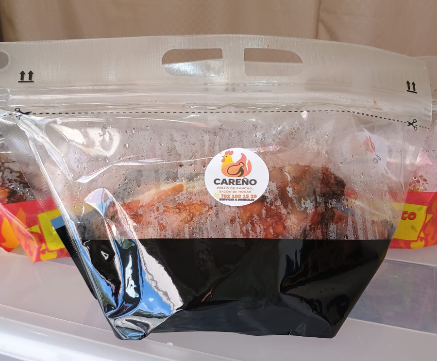 Pollo entero rostizado estilo ranchero, con adobo especial de la casa (800 a 950 g aprox), acompañado de 500 g de arroz casero y salsa 120 ml
